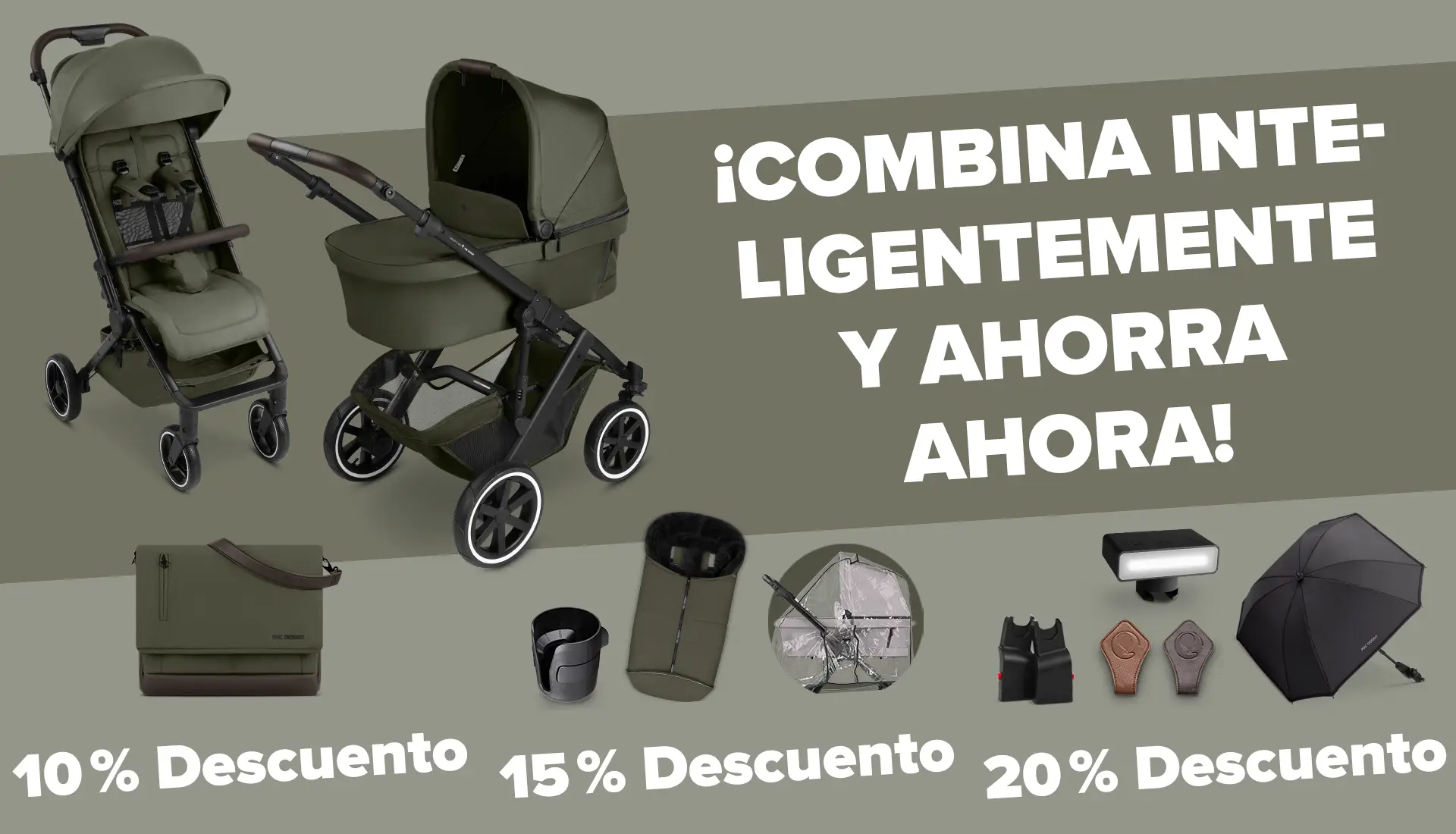 Al comprar un cochecito o un buggy, obtendrás atractivos descuentos por volumen en los accesorios*: