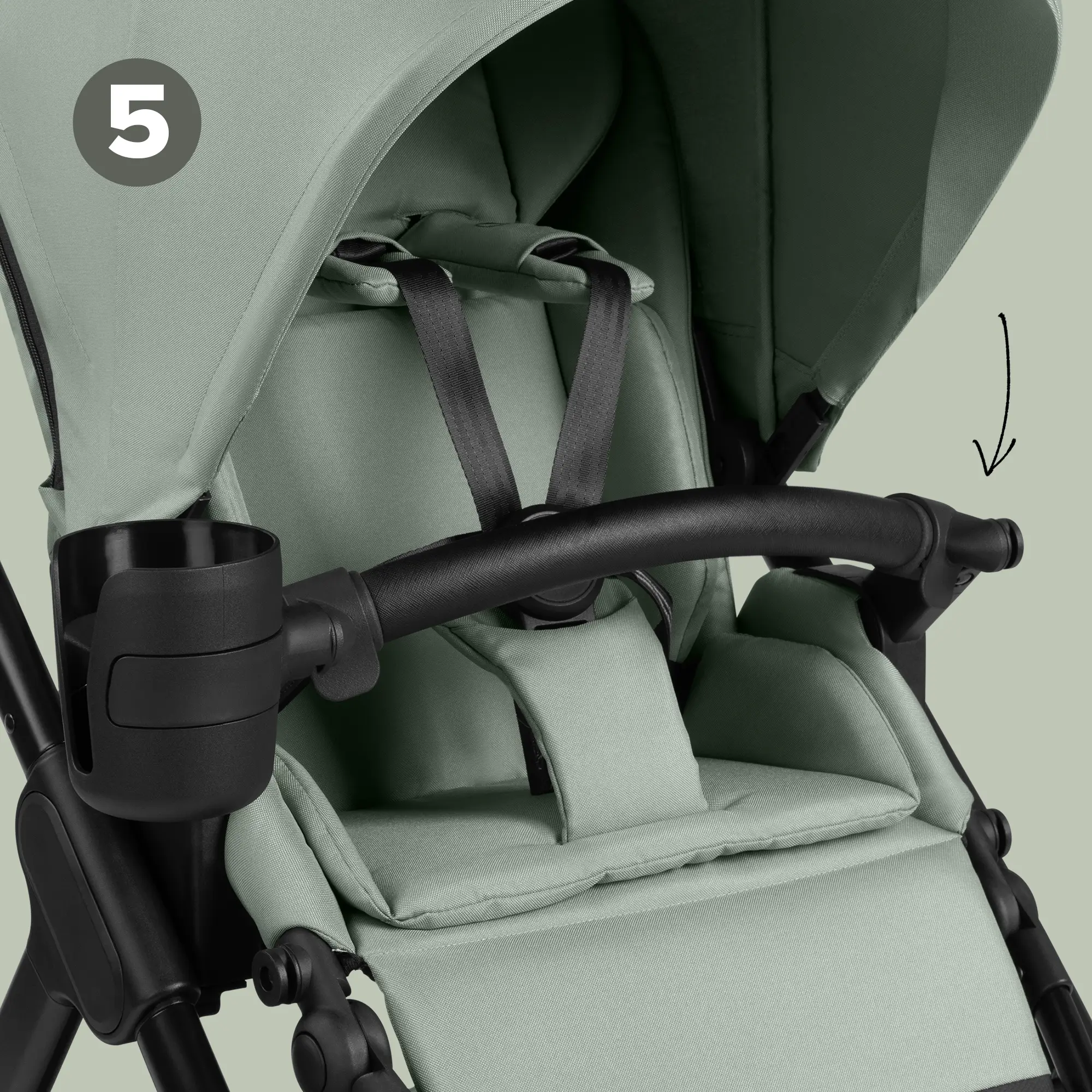 Quando hai il bambino in braccio, ora puoi comodamente ribaltare all'indietro la capottina della navicella con l'altra mano. A tal fine, basta premere brevemente il pulsante su ciascun lato per sbloccare la regolazione della capottina. Nel modello precedente era necessario premere contemporaneamente i pulsanti di sblocco, cosa impossibile con una sola mano. Apprezzerai questo vantaggio in termini di comfort nella vita quotidiana.