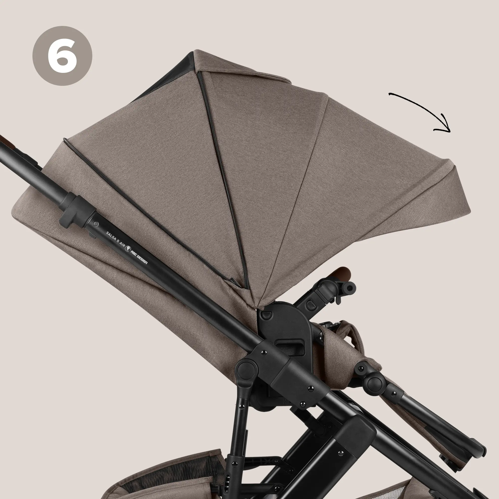 Beim Salsa 5 Air profitierst Du von einem verlängerten Sonnenverdeck des Sportsitzes. Du kannst das Verdeck nicht nur ausklappen, sondern hast ganz vorne eine zusätzliche Sonnenblende. Diese kannst Du bei Bedarf ein- oder ausklappen. Gerade bei extremen Lichtsituationen, wie z.B. tiefstehende Abendsonne, macht dies den entscheidenden Unterschied.