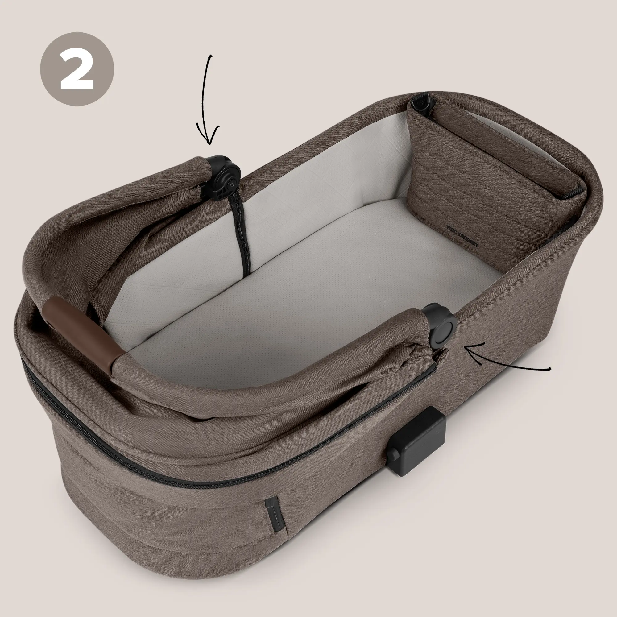 Wenn Du Dein Baby auf dem Arm hast, kannst Du jetzt bequem mit der anderen Hand das Verdeck der Babywanne nach hinten klappen. Hierzu drückst Du einmal kurz den Knopf auf jeder Seite und entriegelst so die Verstellung des Verdecks. Beim Vorgänger Salsa 4 Air musstest Du die Entrieglungsknöpfe gleichzeitig drücken, was mit einer Hand nicht möglich ist. Diesen Komfort-Gewinn wirst Du im Alltag lieben.